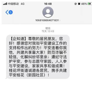 新园社区充分发挥短信平台、网格微信群等线上宣传载体,持续推送防范常识和典型案例,全力搭建网络普法宣传阵地,营造浓厚的宣传氛围,让更多居民群众了解并参与到平安建设工作中,营造人人参与平安建设的浓厚氛围。
