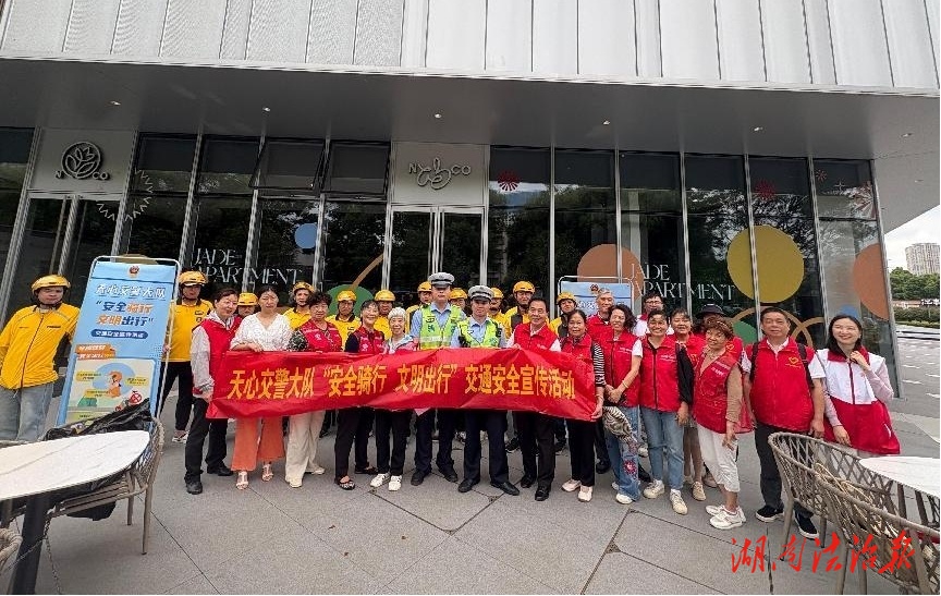 湖南法治报讯(通讯员 谢昕 林洁)为进一步提升电动自行车骑乘人员头盔佩戴率和安全出行意识,有效预防和减少道路交通事故的发生,5月23日,长沙市天心区新开铺街道新开铺社区联合新开铺街道民政社工站、天心区交警大队、交警三中队,在天欣润府营销中心前坪开展“安全骑行,文明出行” 交通安全主题宣传活动,美团骑手、社区党员志愿者及辖区居民积极参与。