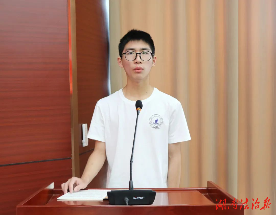 优秀子弟代表童昱鑫娓娓道来,将他成长路上的点滴感悟化作温暖的分享。他谈到,艺术领域的持续学习与反复练习,不仅让他掌握了表达情感的工具,还悄然改变了他看待世界的角度。而爬山、跑步、骑单车等运动则是他锻炼身体、释放压力、储备能量的重要方式——无论是爬山时迎向风的身影,还是骑单车时掠过的风景,都在无形中让他变得更加坚韧、从容,他真诚地说道:“愿我们既能读万卷书,也能行万里路,在踏实前行中遇见更广阔的天地。”