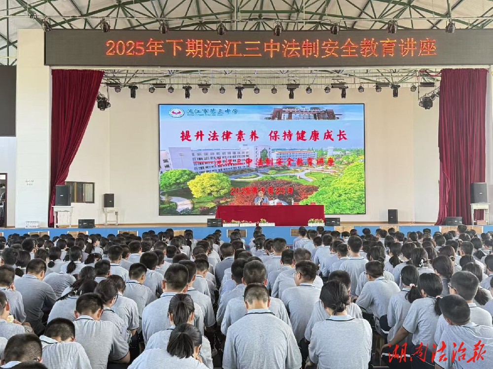 湖南法治报讯(通讯员 汪璨)8月25日,正值新生军训之际,沅江市人民检察院党组副书记、分管日常工作的副检察长姚声亮以法治副校长身份,带领“沅·动力”未检团队走进沅江市第三中学,以《提升法律素养 保持健康成长》为题,为900余名师生带来一堂别开生面的开学“法治第一课”。