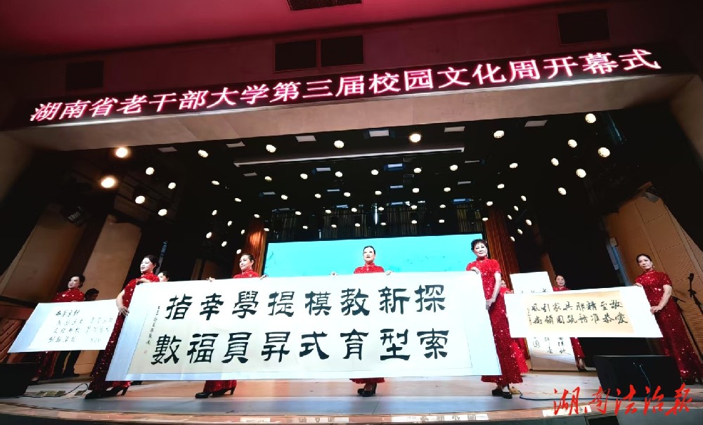 湖南法治报讯(文/志伟 摄影/立强)5月19日上午,“让历史告诉未来”省老干部大学第三届校园文化周在金秋大礼堂开幕。省委组织部副部长、省委老干部局局长、省委离退休干部工委书记刘文新出席讲话并宣布开幕,省地质院党委委员、副院长刘凤娟出席开幕式。省老干部大学校长郭文致开幕辞。湖南省民俗摄影协会副主席胡立强、湖南省音乐家协会副主席金沙等应邀观摩。