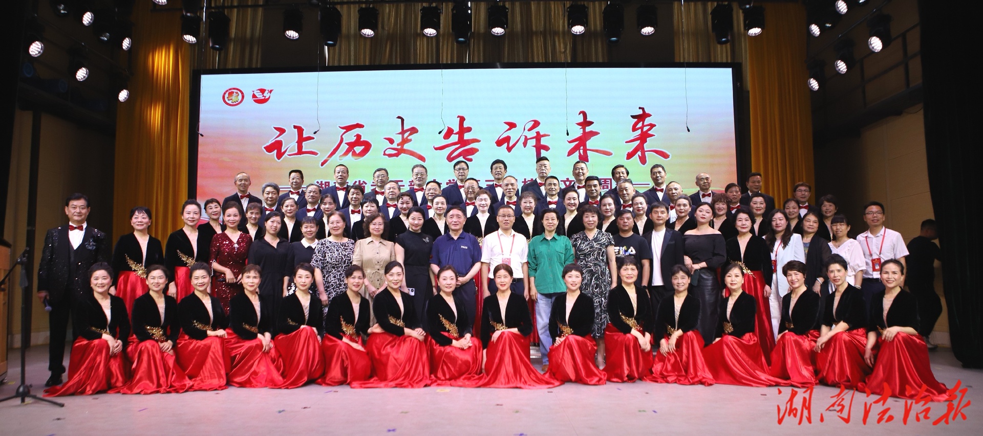 刘文新在讲话中指出,省委老干部局深入贯彻习近平总书记关于老干部工作的重要论述,围绕政治立校、文化兴校的目标,持续加强省老干部大学建设,不断丰富校园文化生活。通过课程体系化、平台多元化、资源整合化,创新打造了“99云电视”,覆盖全省14个市州,上线50余门精品课程;通过举办各类文化活动、展览、演出,持续营造浓厚的校园文化氛围;通过将思想政治教育融入文化活动,更好地引导广大老同志坚定理想信念,永远听党话、跟党走。他强调,省老干部大学既是老同志更新知识、丰盈智慧的学习殿堂,更是淬炼精神、绽放光彩的文艺舞台。他期待,广大老同志积极弘扬优良传统,以笔为戈、以声传情、以行践知,彰显新时代银龄新风采。他希望,广大青少年朋友铭记历史,筑牢信仰之基,让青春在 “请党放心,强国有我” 的誓言中传承红色基因、赓续红色血脉,共同携手面向未来。