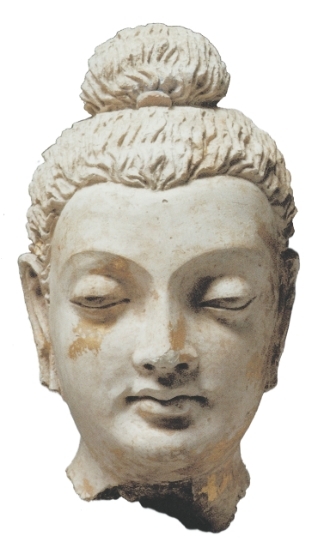 阿富汗哈达佛寺遗址出土泥塑菩萨头像。 |