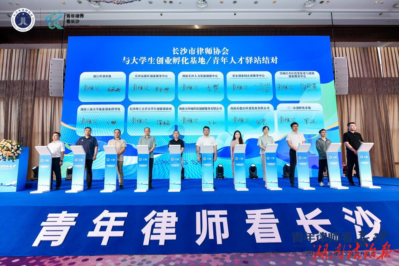 开幕式上,陈宏义发布《长沙市律师行业服务新就业群体八大举措》,全面聚焦快递员、网约车司机等新业态群体劳动权益保障与指导。市律协知产委、公司委、涉外委、人保委、金保委联合发布了《大学生创新创业法律知识百问百答》,涵盖劳动用工、知识产权、金融保险、公司法律、湘企出海等内容。同时,协会与10家大学生创业孵化基地签署《公益法律结对合作协议》,建立与大学生创业群体的常态化服务机制。