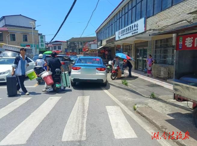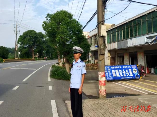 6月30日,湘潭市雨湖区发布高温黄色预警。当日11时,交警支队雨湖大队六中队辅警周剑、涂亮前往湘潭生物机电学校,为学生假期返程执行护学任务。