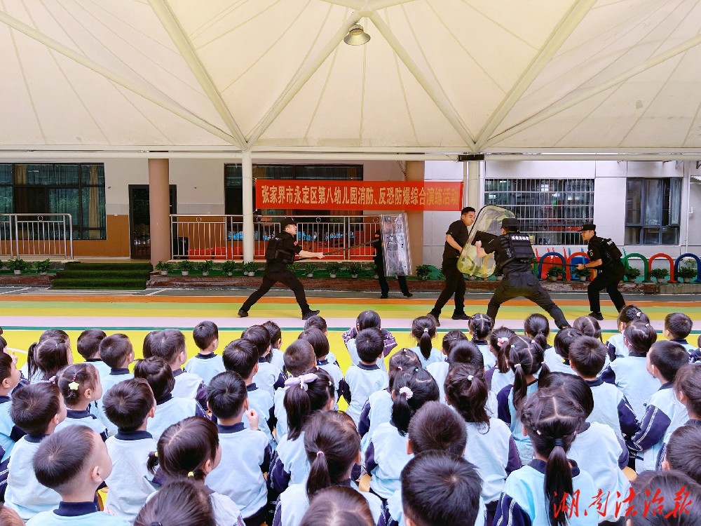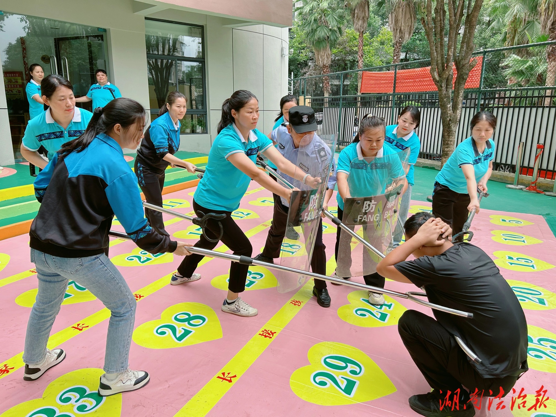 湖南法治报讯(通讯员 宋薇)校园安全,防范为先。为全面提升幼儿园专职安保人员的反恐防暴意识和应急处置能力,切实守好校园安全的第一道关口,9月23日上午,永定公安分局反恐怖和特警大队走进张家界第八幼儿园,为全体安保人员开展了一场专业、实用的防爆器械专项培训与演练活动。