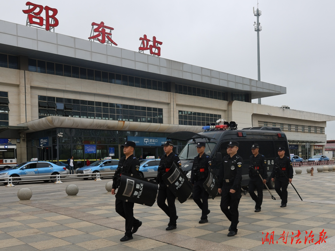 国庆首日,邵东公安启动等级勤务模式,最大限度将警力摆上街面,投向人员密集场所、交通枢纽、重点区域和治安复杂地段。特警、派出所民辅警力量混合编组,采取车巡、步巡、定点值守相结合的方式,开展高频次、全覆盖的巡逻防控,切实提高见警率、管事率,有效挤压违法犯罪空间,增强人民群众的安全感。在广场、步行街、公园等地,随处可见民辅警挺拔的身影和闪烁的警灯,他们目光如炬,成为假日里一道令人安心的“警”色。