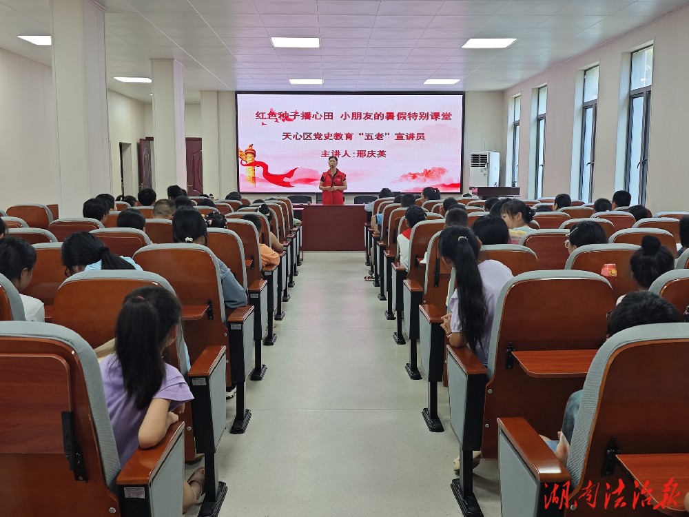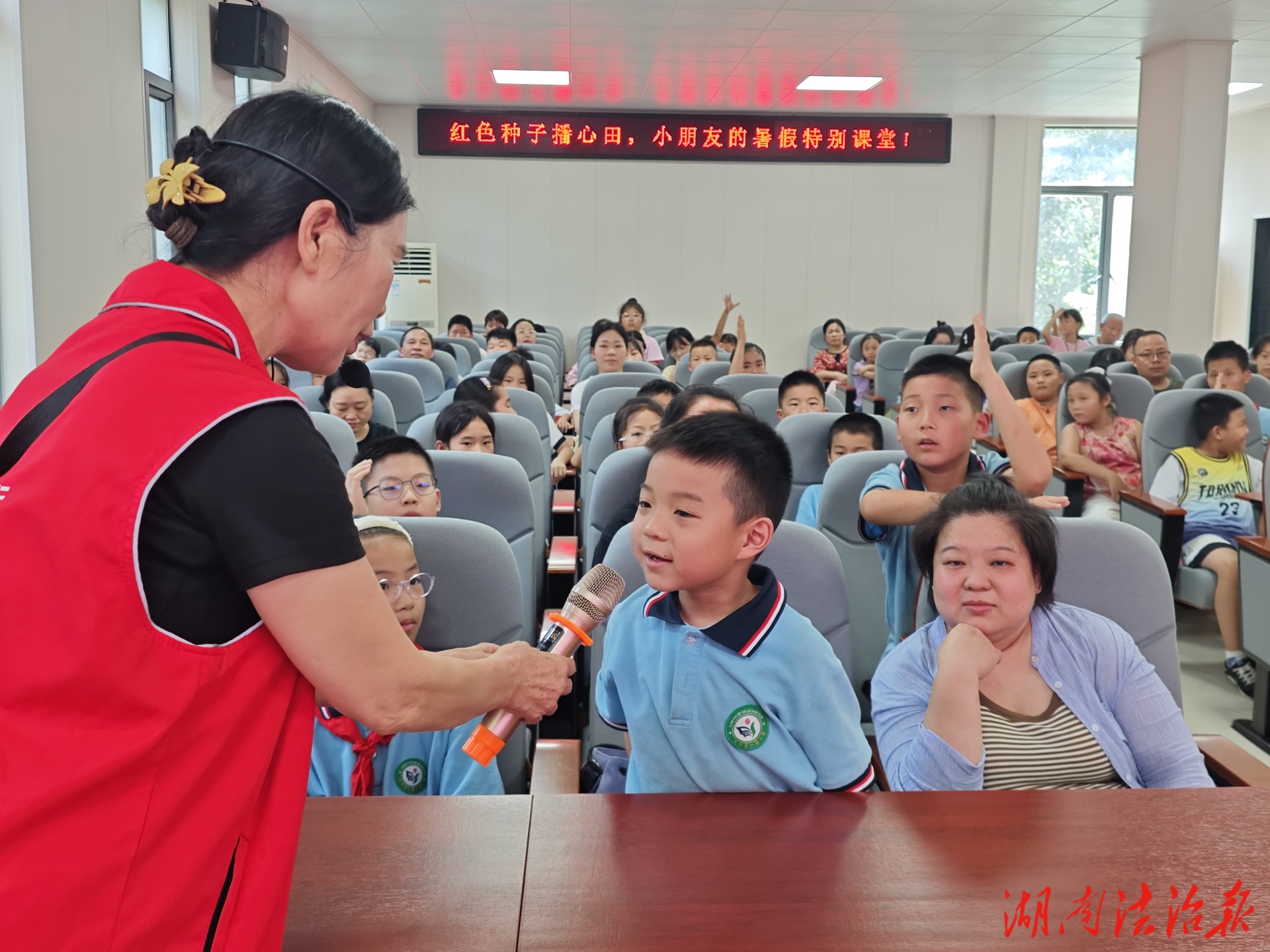 湖南法治报讯(通讯员 张馨月)历史的回响穿越时空,信仰的火炬生生不息。7月7日这天,这里更是格外热闹——咱们请到了天心区“平安志愿者”、“长沙好人・身边雷锋”邢庆英奶奶,给孩子们上了堂特别的“红色种子播心田”暑假课。这堂课没有严肃说教,满是孩子们爱听的故事和互动。