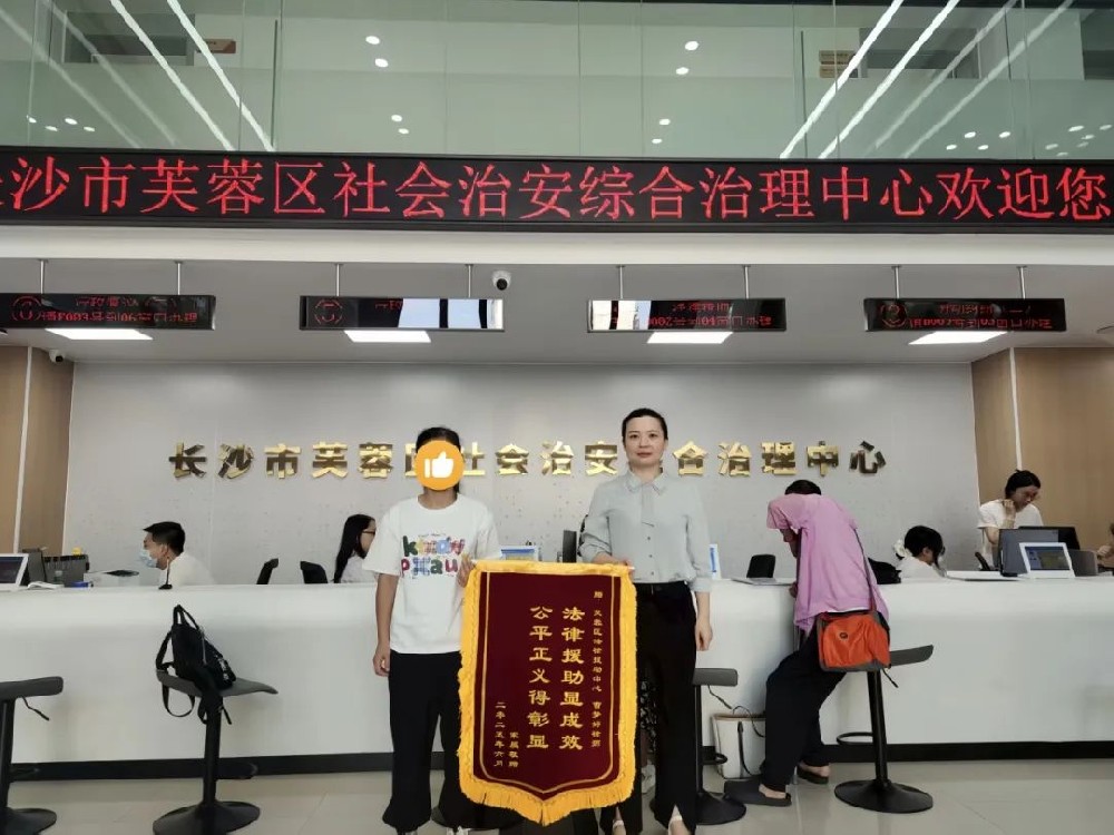 湖南法治报讯(通讯员 曹梦婷)近日,受援人童某的家属专程来到芙蓉区法律援助中心,将一面饱含谢意的锦旗送到工作人员手中,对中心及承办律师曹梦婷在童某涉嫌盗窃罪一案中提供的法律援助表示衷心感谢。这面锦旗不仅承载着受援家庭的感激,更是对芙蓉区法律援助工作实效的生动见证。