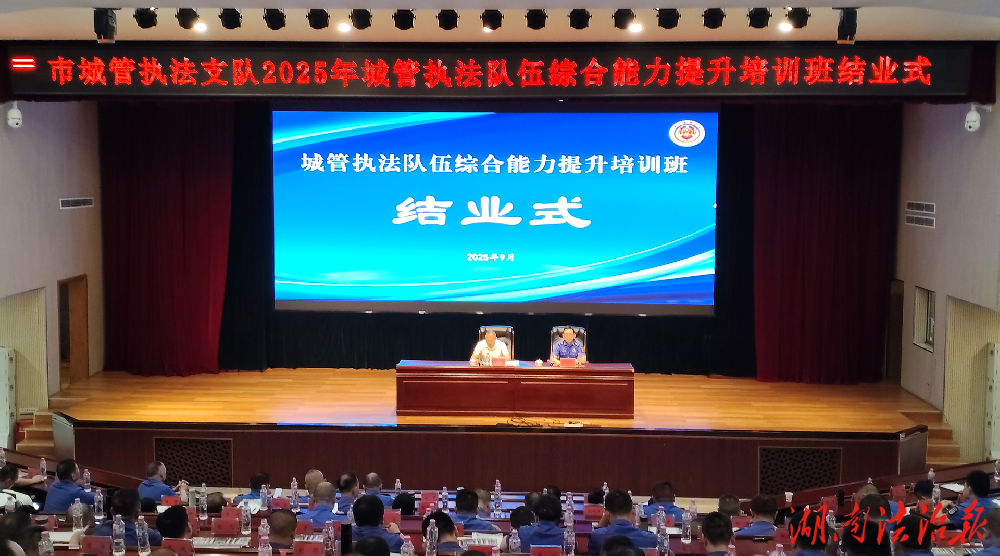 湖南法治报讯(通讯员 包张玉)2025年9月29日下午,岳阳市城市管理行政执法支队“城管执法队伍综合能力提升培训班”结业式在市委党校举行。为期两天半的封闭式集中培训圆满收官,市城管局党组成员、副局长杨思权出席结业式并作总结讲话,支队党委副书记徐畅主持仪式。