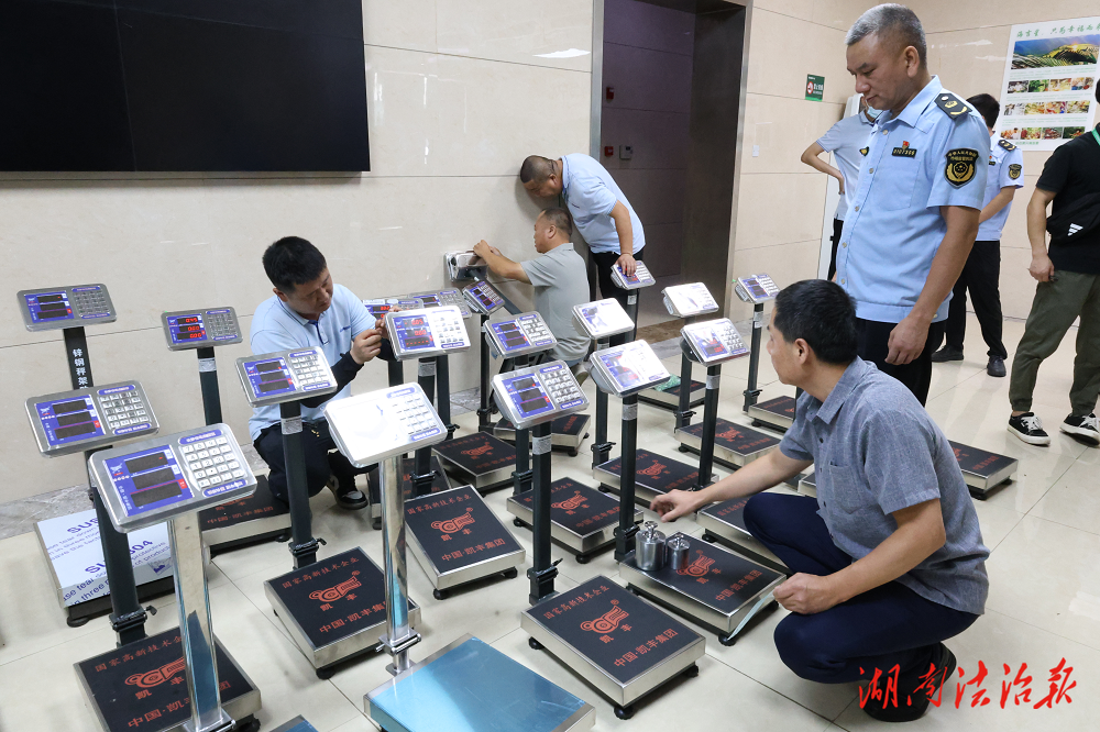7月16日上午,在长沙海吉星市场,长沙县市场监管局、长沙县综合检测中心的计量检定人员正在对新更换的电子计价秤逐一进行强制检定,确保居民的“菜篮子”拎得更放心、安心。