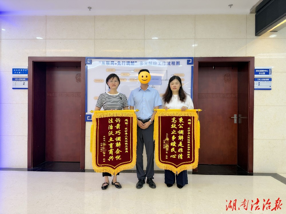 湖南法治报讯(通讯员 李瑶)“多亏了法院及时组织调解,让公司顺利追回24万余元工程款!”在款项到位的第三天,某电梯公司负责人就向长沙县法院送来了两面锦旗。