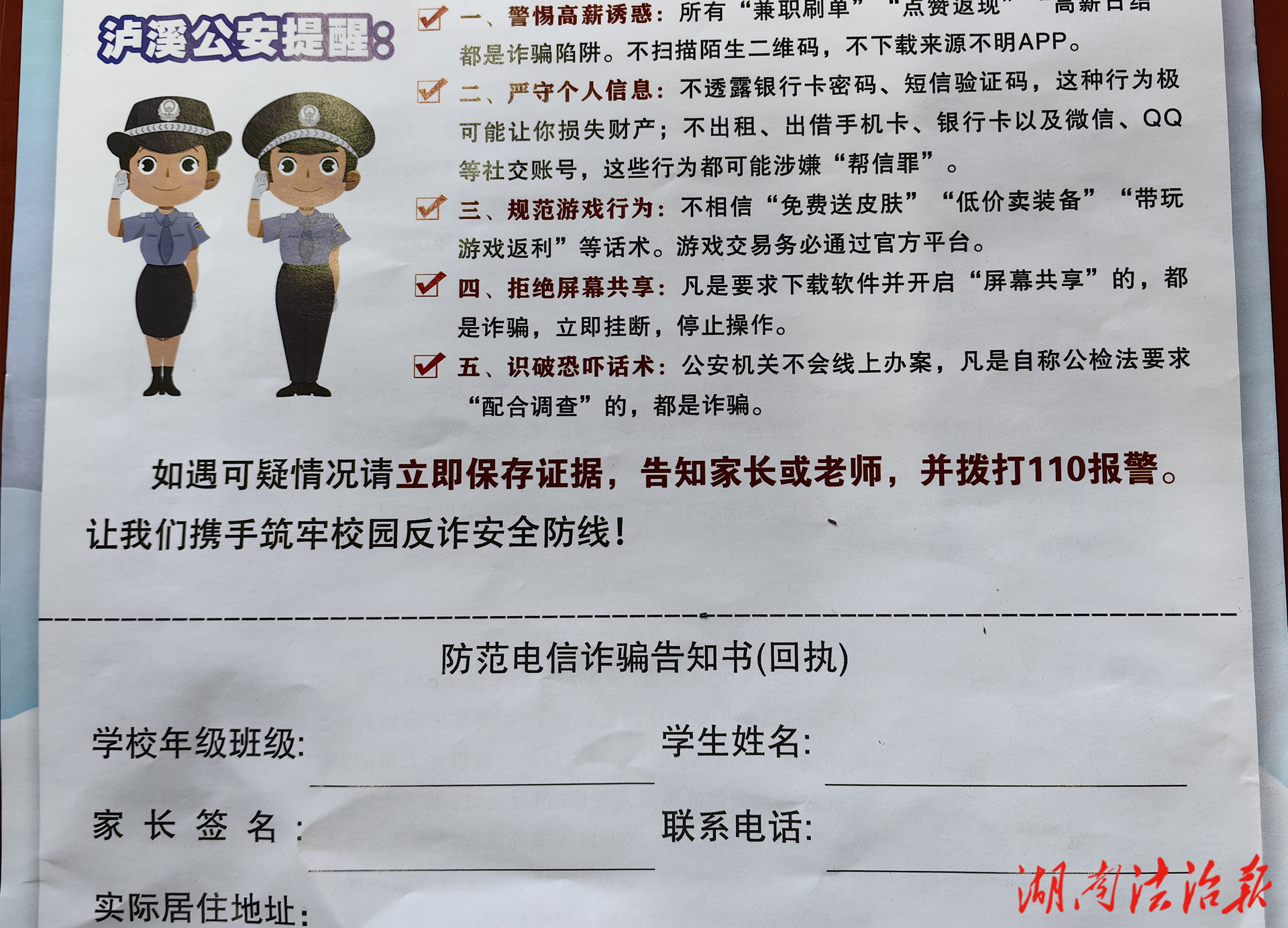 人手一份!泸溪公安为全县学生“量身定制”反诈指南