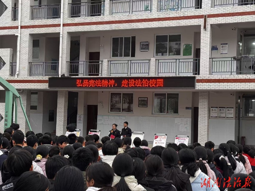 在第十二个国家宪法日到来之际,为深入弘扬宪法精神,切实筑牢青少年宪法意识与法治观念,12月3日,石门县人民检察院“橘城未蓝”未成年人检察工作室的检察官们走进壶瓶山镇中心学校,以“弘扬宪法精神,建设法治校园”为主题开展宪法宣传教育活动,为同学们带来一堂兼具法理深度与人文温度的宪法启蒙课。